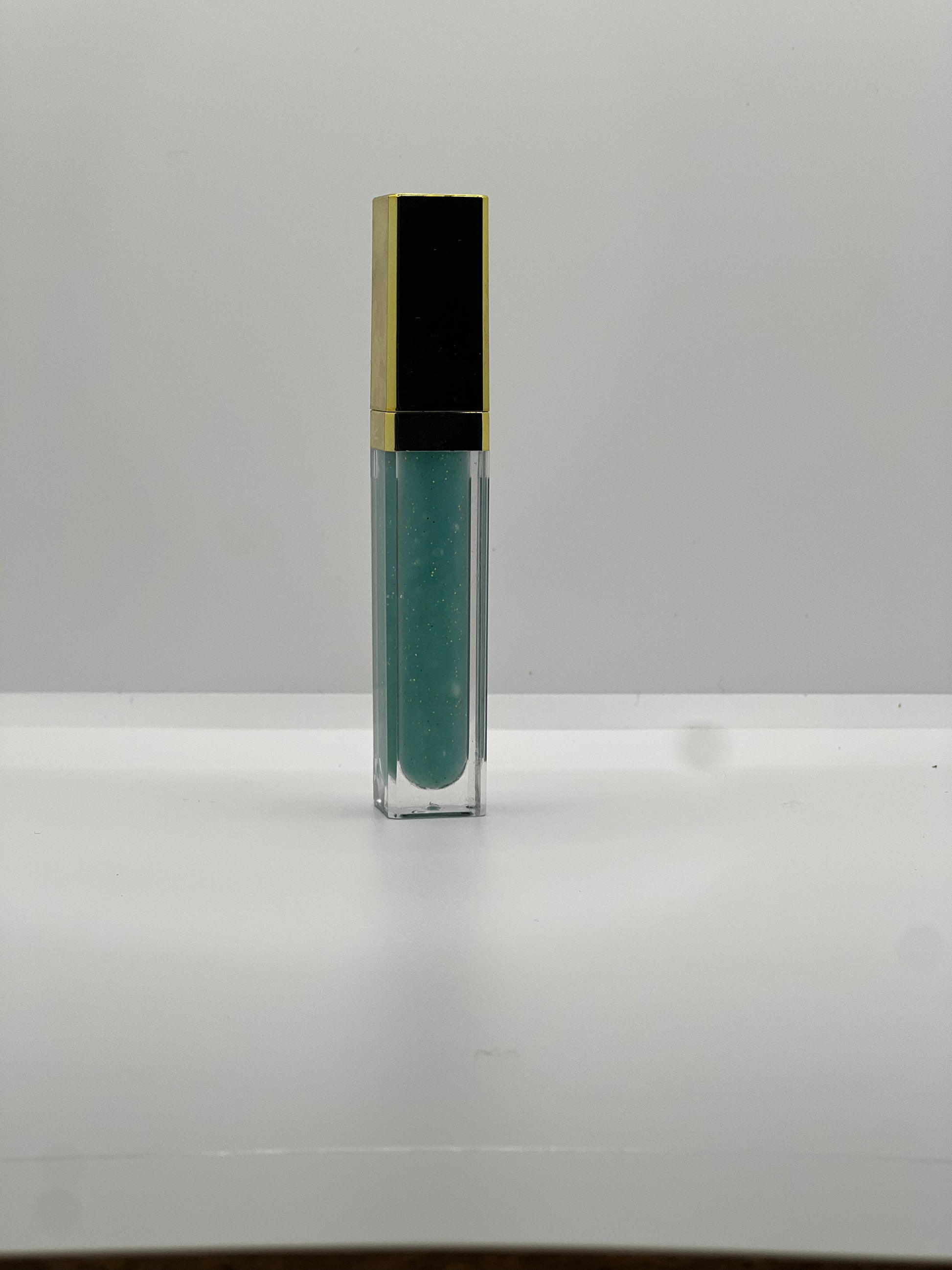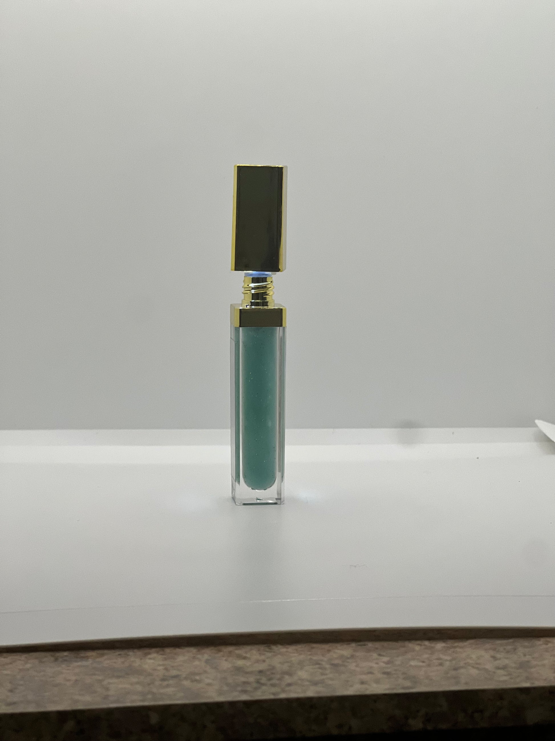 This beauty is flavored blueberry and Cantaloupe with gold sparkles with vitamin E oil and Olive Oil